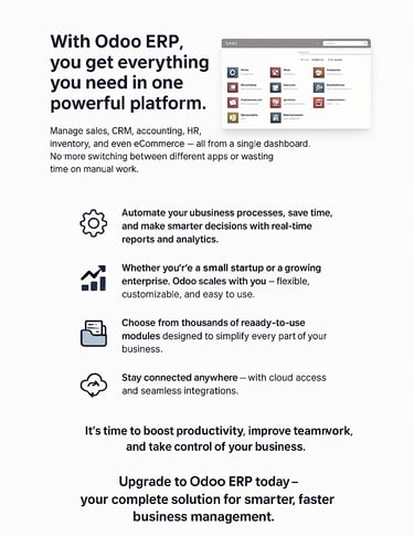 TechTayo offers advanced Odoo ERP solutions to help businesses automate sales, CRM, and accounting operations seamlessly.